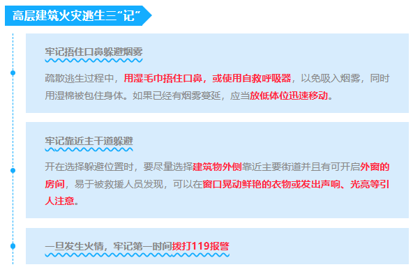 近期,针对高层火灾逃生,中华人民共和国应急管理部发布了相关指南: