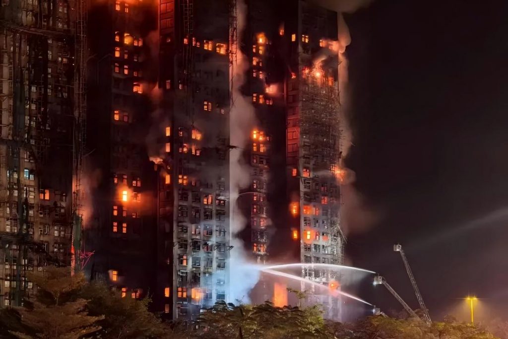 11月26日,香港大埔宏福苑发生五级火灾,七座民宅大厦失火。大火在持续焚烧了超过43小时后,到11月28日上午10点18分终于被大致扑灭。火灾的事发地宏福苑建于1983年,是一座拥有8栋楼、近两千单位、31层的老居屋社区。近来面临大修,外墙堆满棚架和围网。一旦起火,干燥的风将火屑吹开,火舌就会瞬间开始沿围网向上层和邻近大楼燃烧。