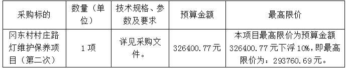 冈东村村庄路灯维护保养项目(第二次) 竞争性磋商公告